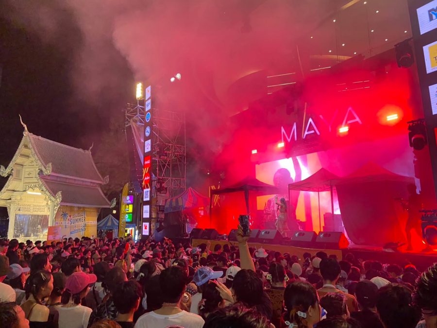每年四月的泼水节(Songkran,宋干节),是泰国庆祝传统新年的盛大节日。在泰国,泼水节(宋干节)的公众假日为期三天,除了传统的泼水活动,人们还会举行许多其它活动,以营造团结和欢乐的社区气氛。在泰国北部城市清迈(Chiang Mai),除了一系列的街头活动外,泼水节(宋干节)的庆祝活动聚焦到了 MAYA购物中心外的一个大型舞台上,这里的活动内容包含DJ表演、现场艺人表演、以及舞蹈表演等。