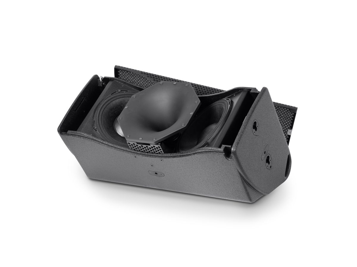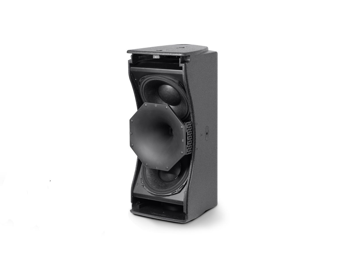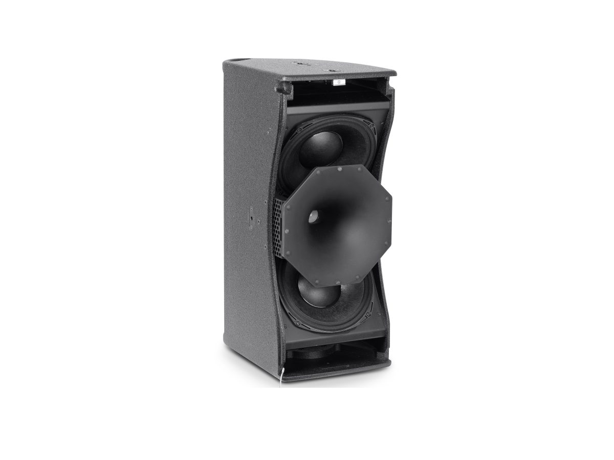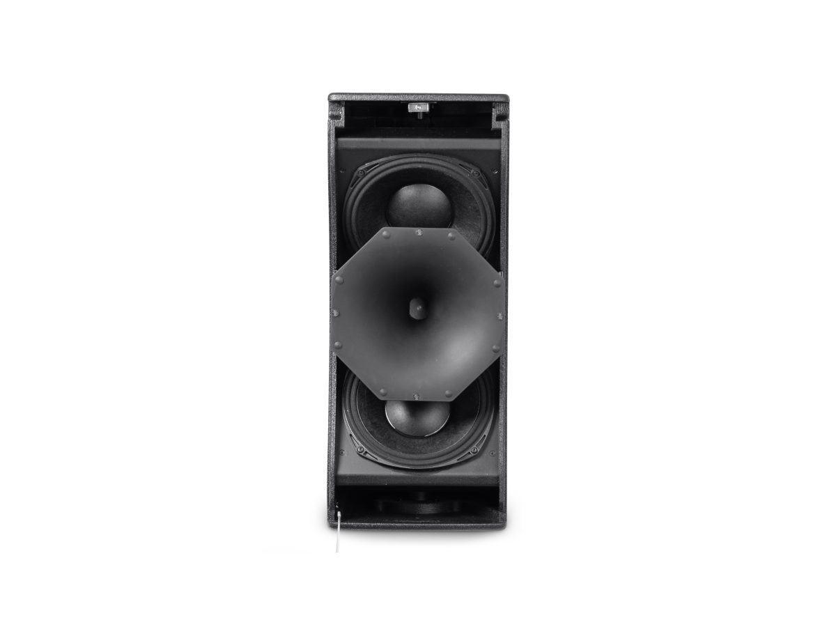 | 低频组件: | 2x 10″ 钕磁铁防水音盆驱动单元, 3″ (77 mm) 音圈, 700 W (AES) |