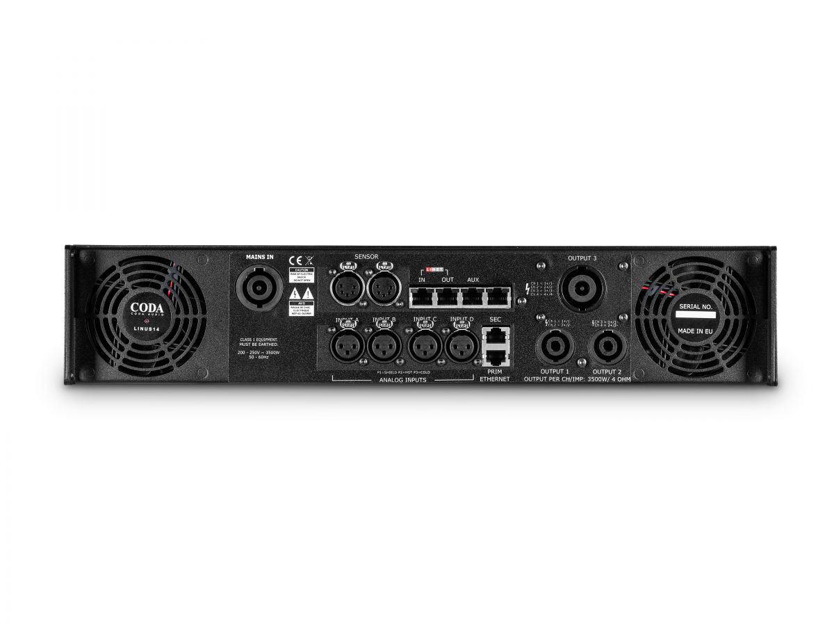 LINUS14是一款19"/2U机身高度,集成DSP,网络控制与比较器功能的4通道轻质功放。4路音频输入可选择模拟音频,LiNET数字音频,通过输入矩阵路由到任意的4路输出。