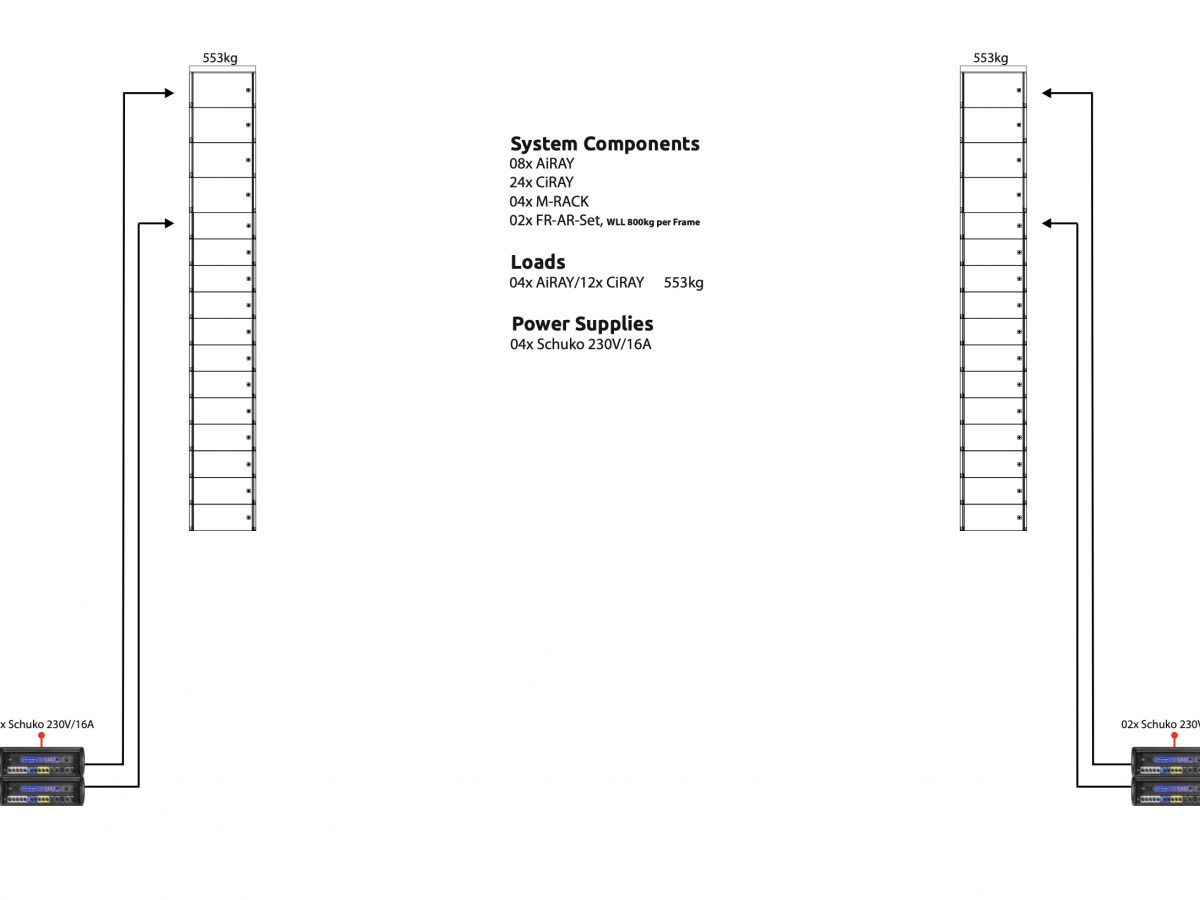 包含EXBAR-AR和ADS的框架,用于AiRAY, CiRAY, ViRAY, SC2-F和SCV-F的吊挂或地面堆叠安装