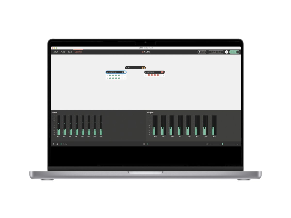 LINUS Control应用程序为控制与监视CODA LINUS功放平台提供了一个可靠而坚固的方法。LINUS Control兼容Mac OSX与Windows操作系统,支持平板及桌面环境。LINUS Control应用程序捆绑了设备固件,扬声器文件,控制逻辑以及一个第三方UDP控制协议用于第三方设备在离线状态下远程控制LINUS功放。